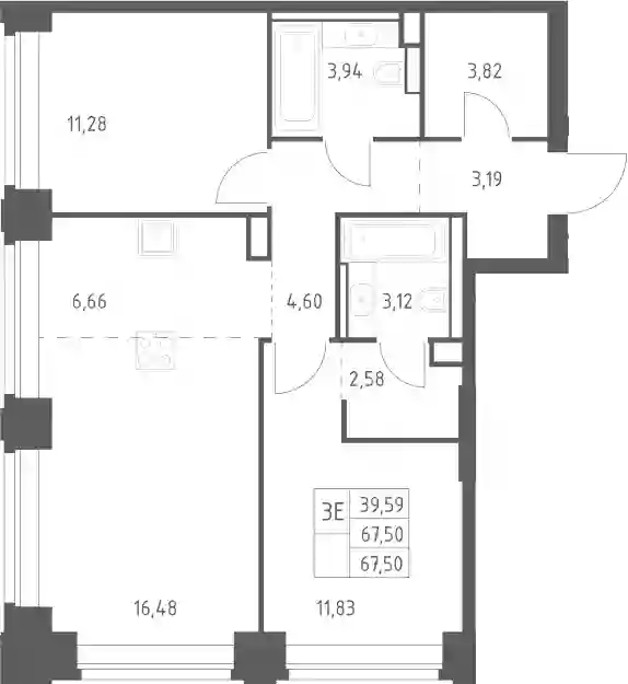 58 493 542 ₽3-к.квартира, 67.5 м², 15 эт.