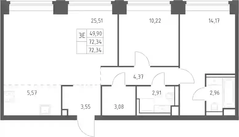 57 752 060 ₽3-к.квартира, 72.34 м², 26 эт.