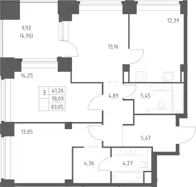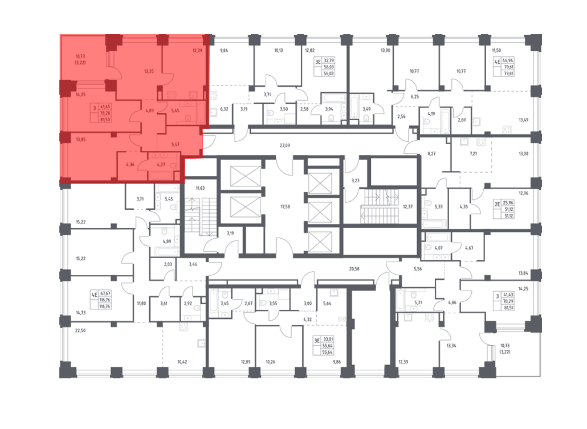 3-к.квартира, 78.09 м², 30 эт. в ЖК NOVA Корпус 3