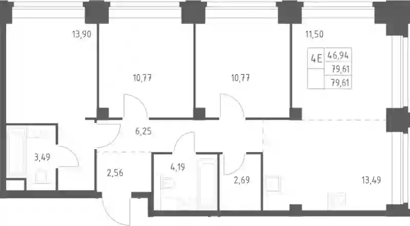 4-к.квартира, 79.61 м², 31 эт. в ЖК NOVA Корпус 3