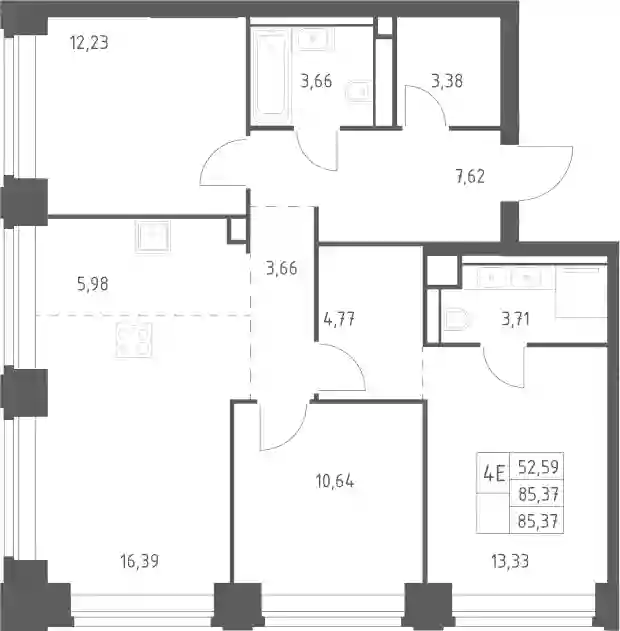 63 397 532 ₽4-к.квартира, 79.55 м², 8 эт.