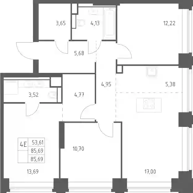 69 538 694 ₽3-к.квартира, 85.7 м², 11 эт.