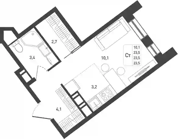 10 787 047 ₽Студия, 25.2 м², 4 эт.