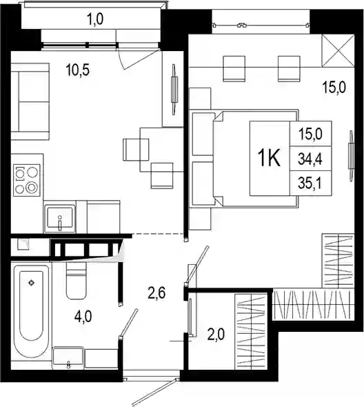 1-к.квартира, 34.4 м², 2 эт. в ЖК Новая Щербинка Корпус 16