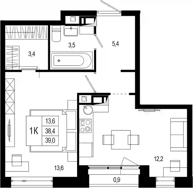 14 917 134 ₽1-к.квартира, 38 м², 1 эт.