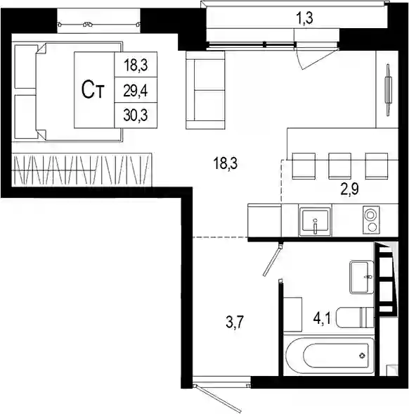 10 592 096 ₽Студия, 29.4 м², 3 эт.