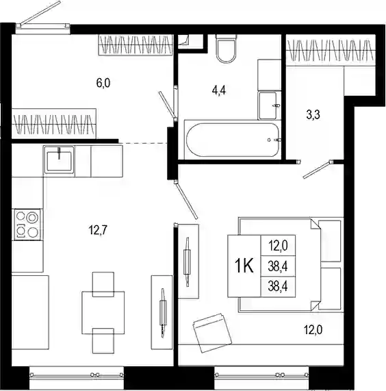 1-к.квартира, 38.4 м², 1 эт. в ЖК Новая Щербинка Корпус 17