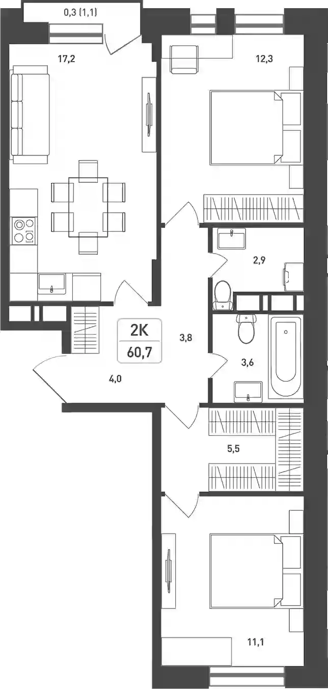В комплексе предложено множество планировочных решений: от студий до трехкомнатных квартир. В квартирах предусмотрено панорамное остекление балконов. Они сдаются с подчистовой, чистовой отделкой, а также без отделки и высотой потолков 2,8 м.