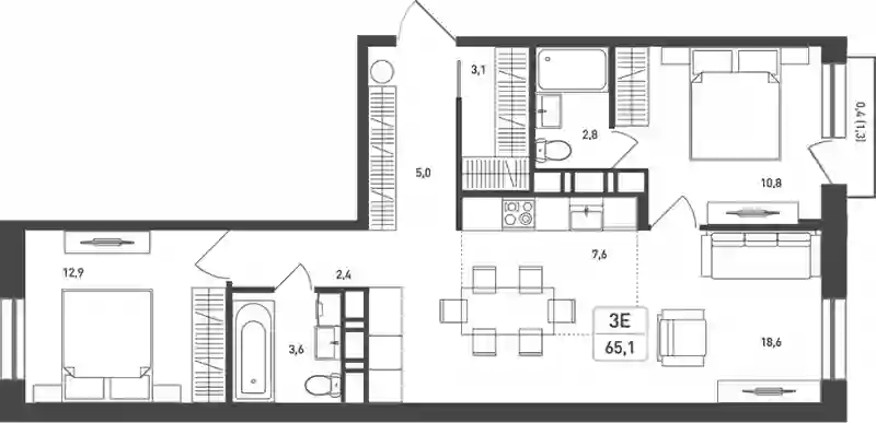 3-к.квартира, 66.8 м², 7 эт. в ЖК Новая Щербинка Корпус 18