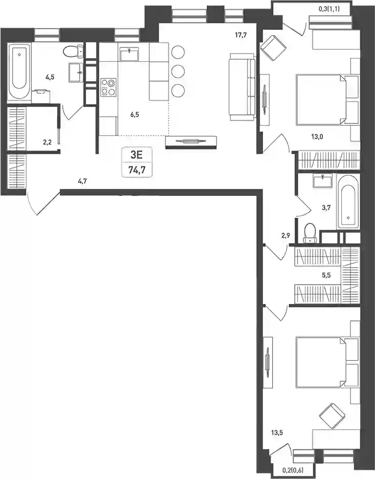 12 311 370 ₽3-к.квартира, 75.9 м², 17 эт.