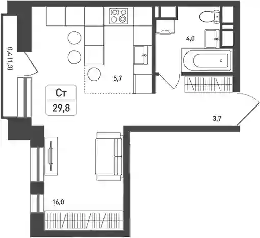 9 570 014 ₽Студия, 29.8 м², 2 эт.