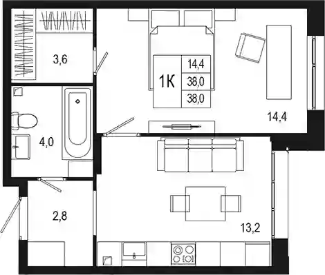 1-к.квартира, 38 м², 1 эт. в ЖК Новая Щербинка Корпус 19
