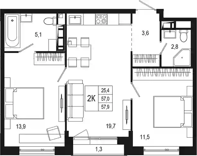 57 м2