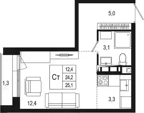 Студия, 24.2 м², 2 эт. в ЖК Новая Щербинка Корпус 19