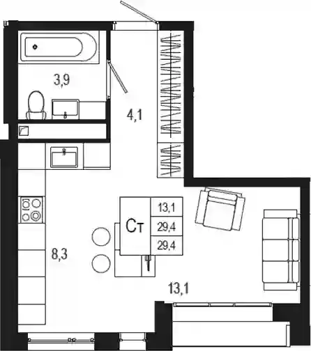 Студия, 29.4 м², 1 эт. в ЖК Новая Щербинка Корпус 19