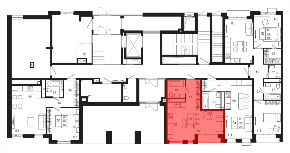 В комплексе предложено множество планировочных решений: от студий до трехкомнатных квартир. В квартирах предусмотрено панорамное остекление балконов. Они сдаются с подчистовой, чистовой отделкой, а также без отделки и высотой потолков 2,8 м.