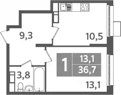 1-к.квартира, 36.7 м², 9 эт. в ЖК Ново-Молоково Корпус 13