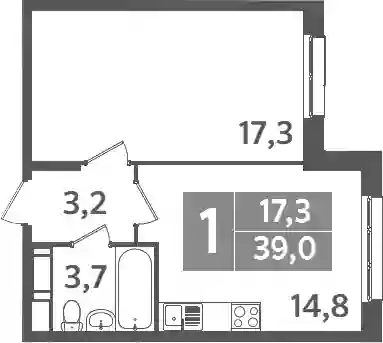 6 726 000 ₽1-к.квартира, 39 м², 8 эт.