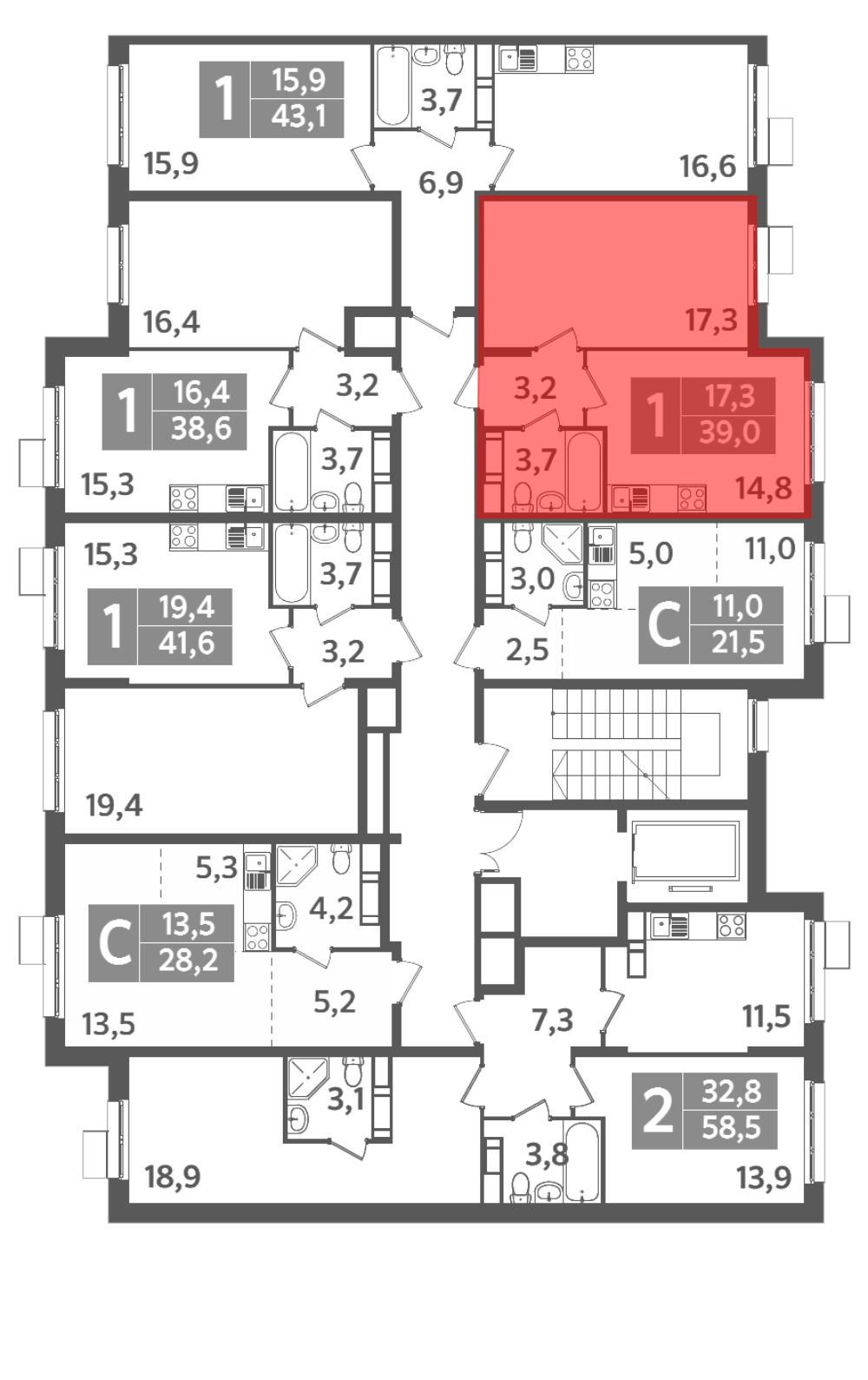 39 м2