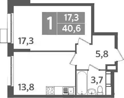 1-к.квартира, 40.6 м², 3 эт. в ЖК Ново-Молоково Корпус 13