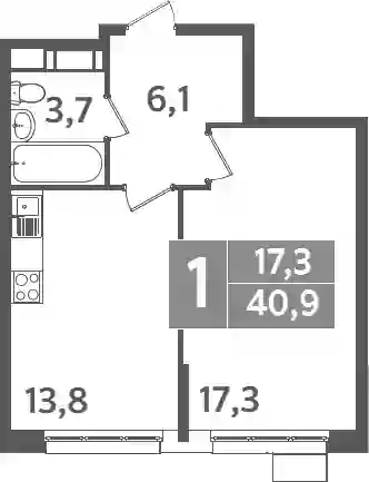 1-к.квартира, 40.9 м², 9 эт. в ЖК Ново-Молоково Корпус 13
