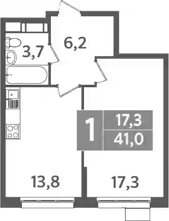 6 148 262 ₽2-к.квартира, 37.72 м², 17 эт.