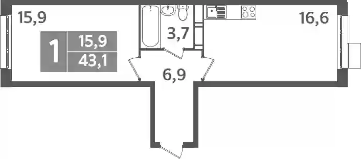 6 860 000 ₽1-к.квартира, 43.1 м², 8 эт.