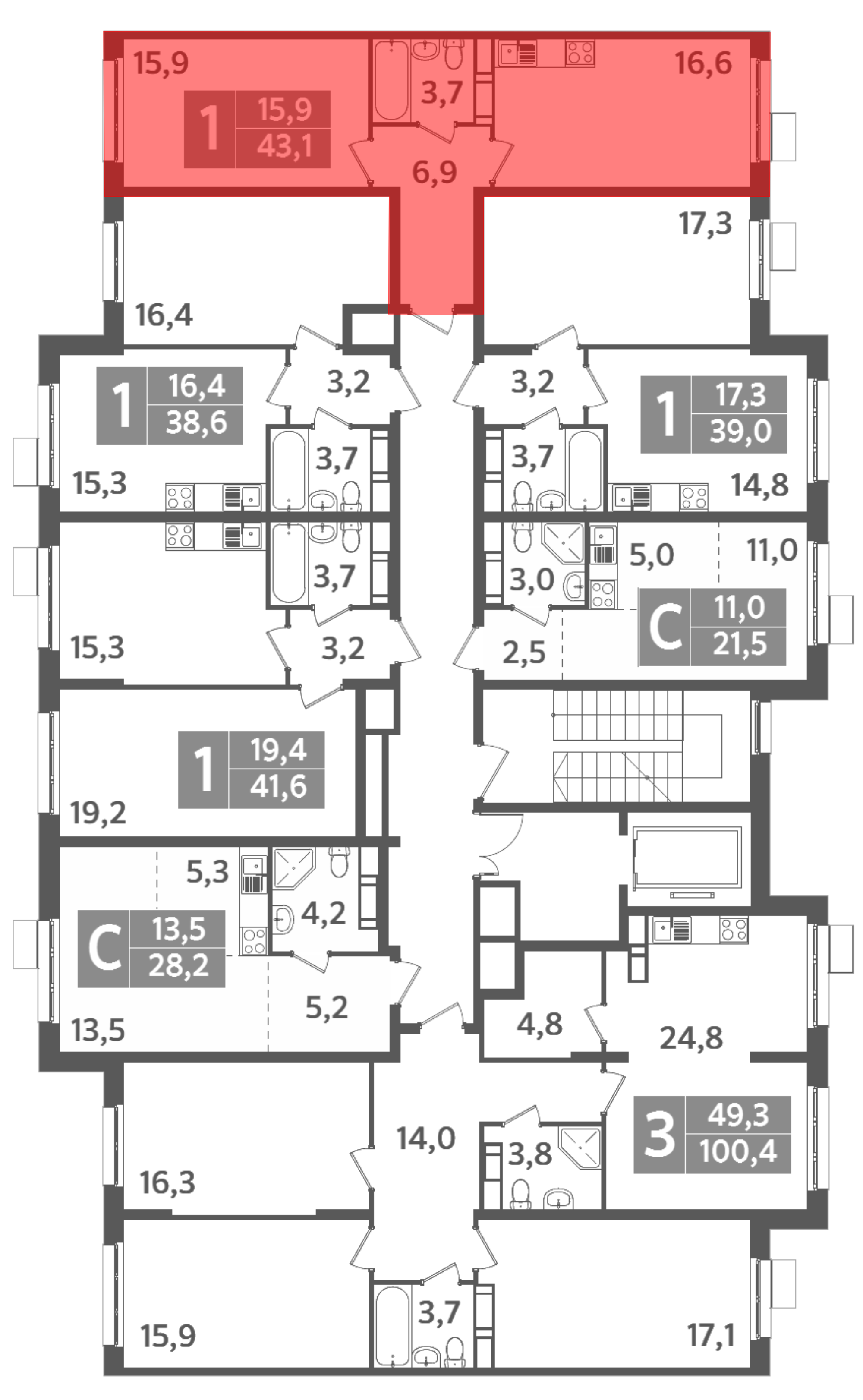 6 643 000 ₽1-к.квартира, 43.1 м², 4 эт.