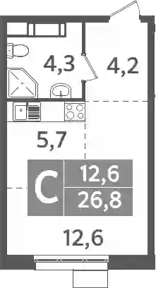 4 429 726 ₽Студия, 25.93 м², 12 эт.