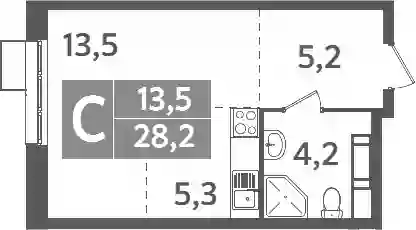 Студия, 28.2 м², 6 эт. в ЖК Ново-Молоково Корпус 13