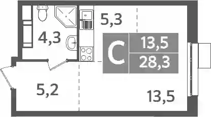 5 335 000 ₽Студия, 28.2 м², 7 эт.