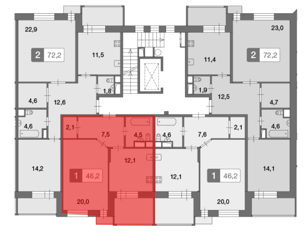 8 992 113 ₽1-к.квартира, 46.2 м², 2 эт.