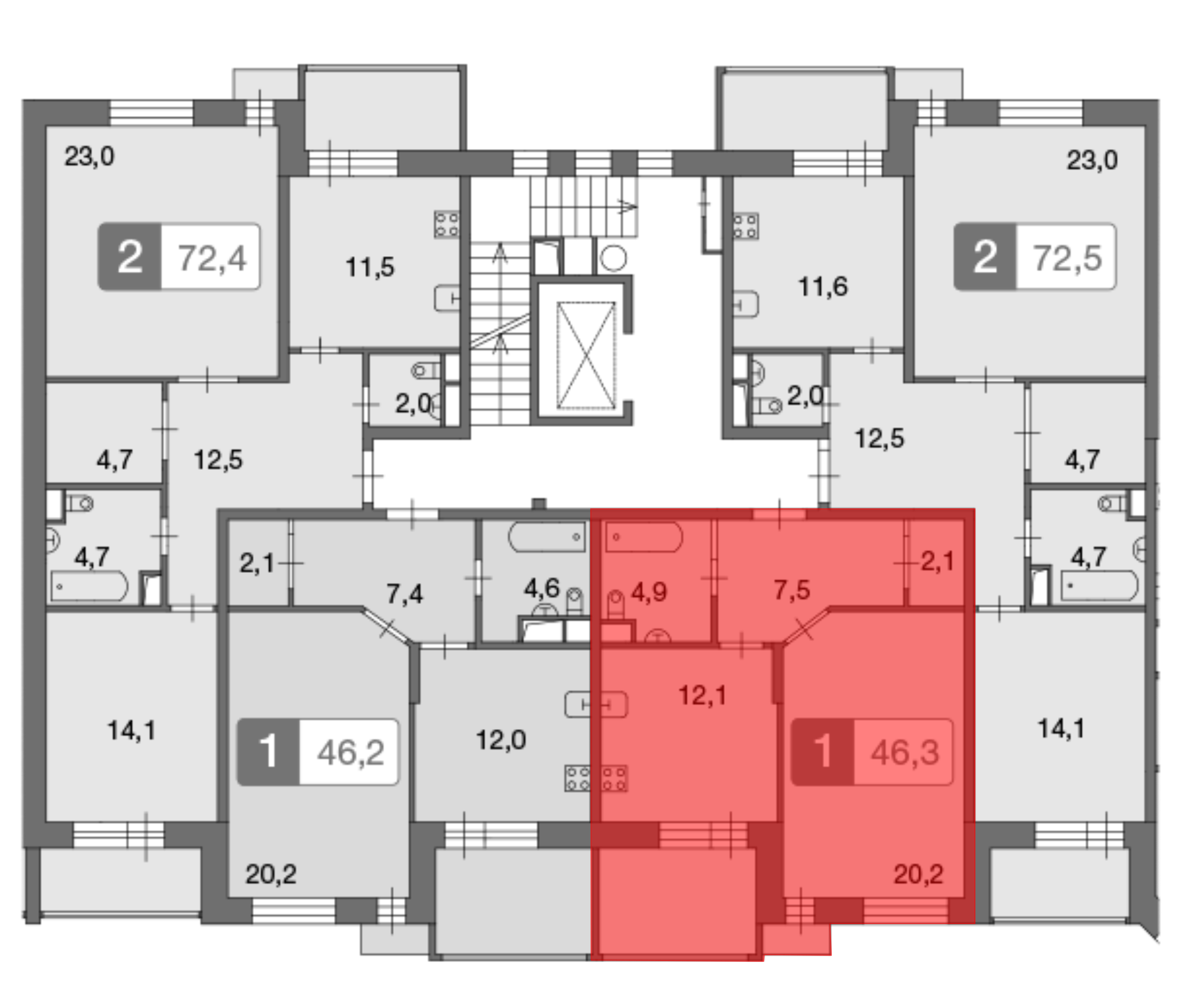 46.3 м2