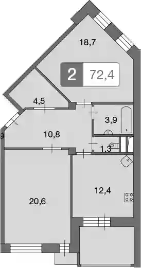 10 571 102 ₽2-к.квартира, 72.4 м², 9 эт.