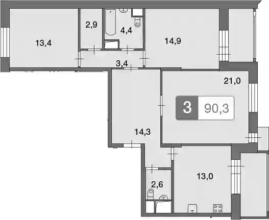 12 390 310 ₽3-к.квартира, 90.3 м², 9 эт.