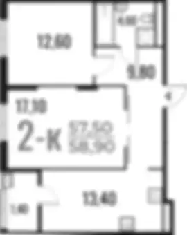 19 718 900 ₽2-к.квартира, 56.9 м², 4 эт.