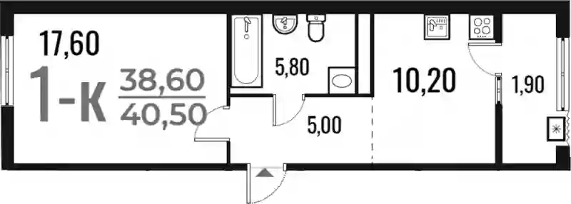 1-к.квартира, 38.6 м², 7 эт. в ЖК Новое Летово Корпус 1