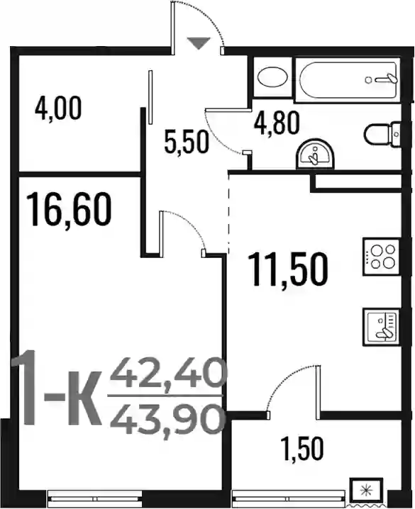 15 316 710 ₽1-к.квартира, 42.4 м², 4 эт.