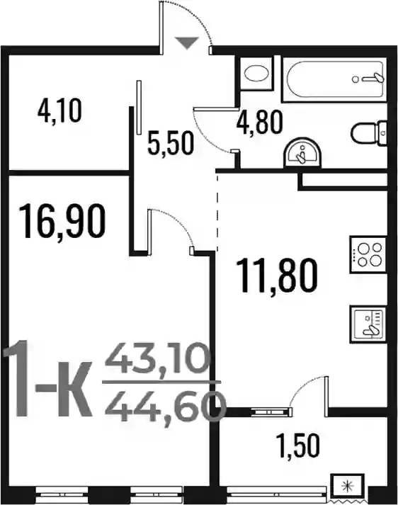 1-к.квартира, 43.1 м², 3 эт. в ЖК Новое Летово Корпус 1