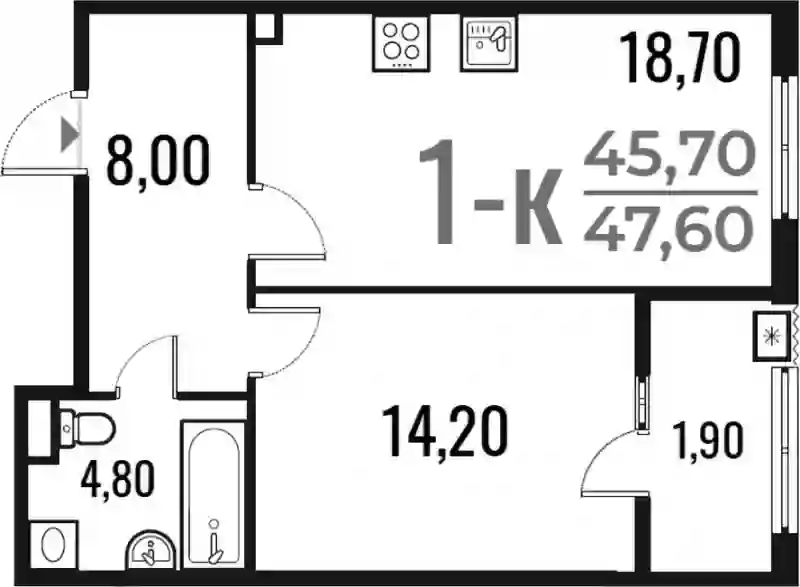 1-к.квартира, 45.7 м², 6 эт. в ЖК Новое Летово Корпус 1
