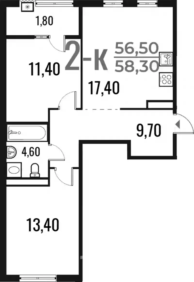 19 567 740 ₽2-к.квартира, 58.8 м², 2 эт.