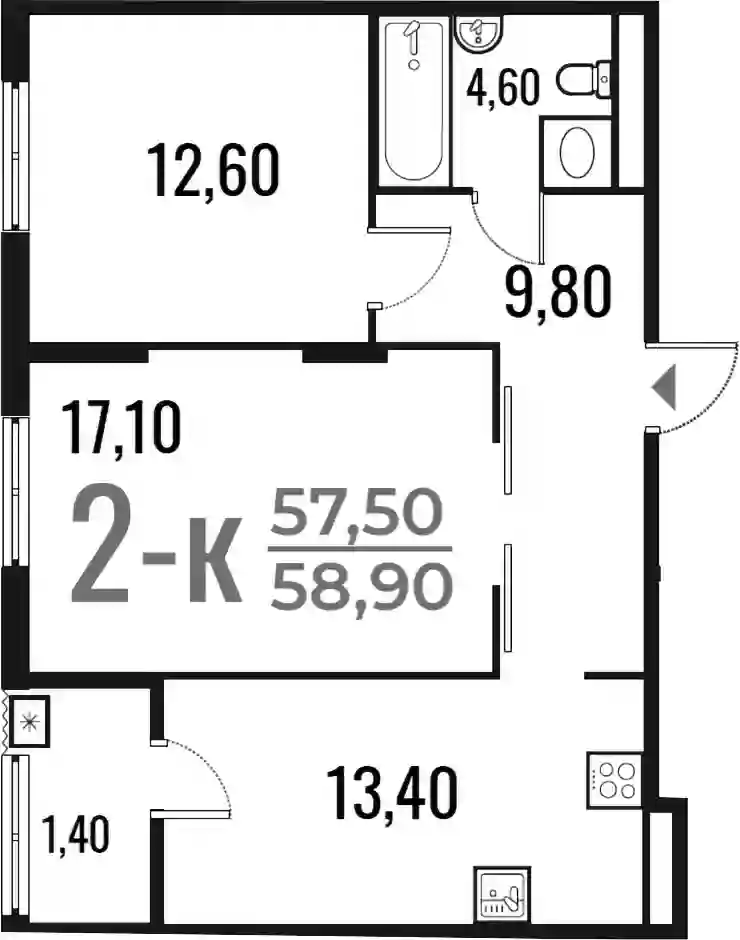 2-к.квартира, 57.5 м², 7 эт. в ЖК Новое Летово Корпус 1
