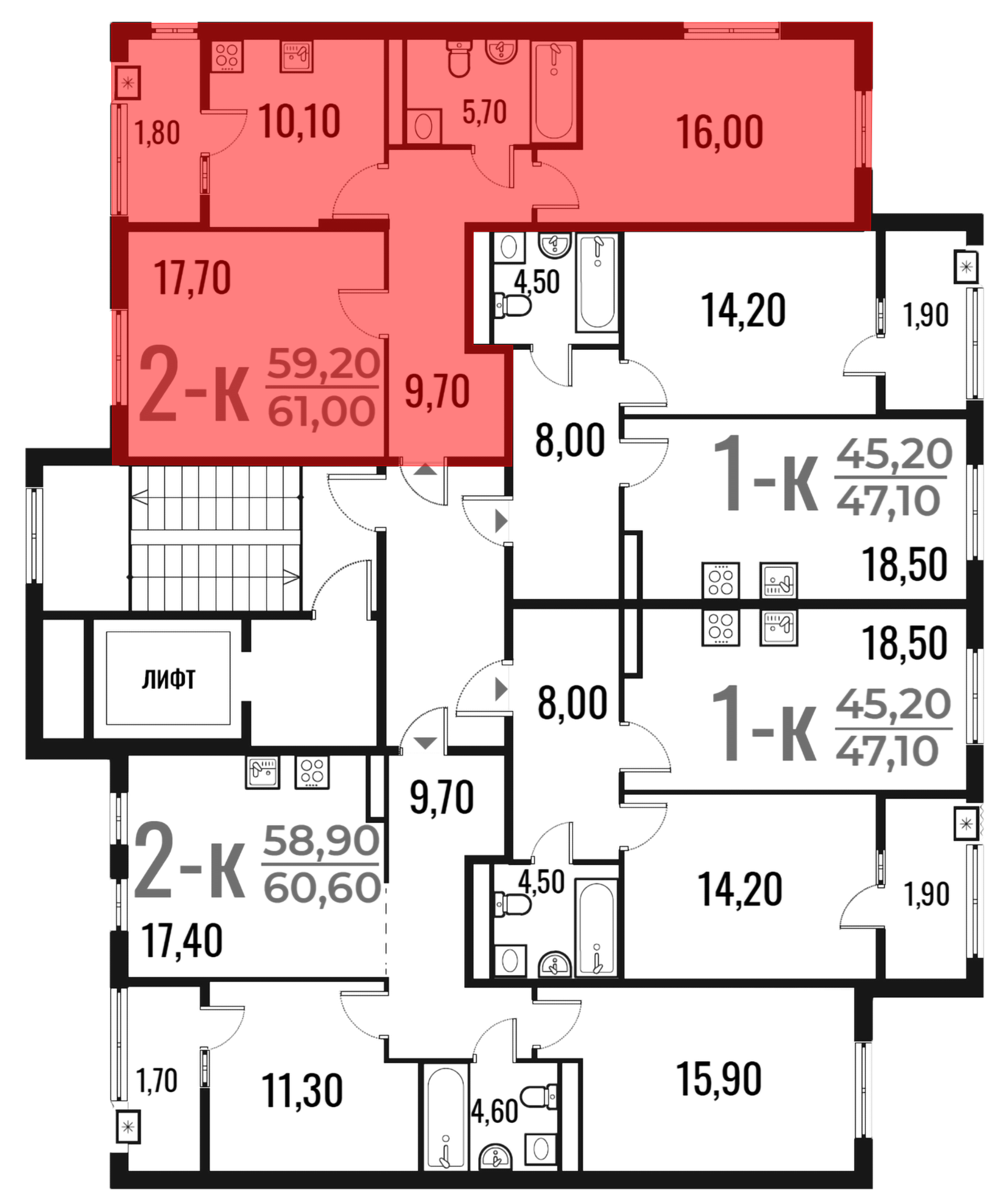 2-к.квартира, 59.5 м², 4 эт. в ЖК Новое Летово Корпус 1