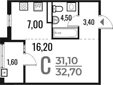 12 951 600 ₽Студия, 32.8 м², 7 эт.