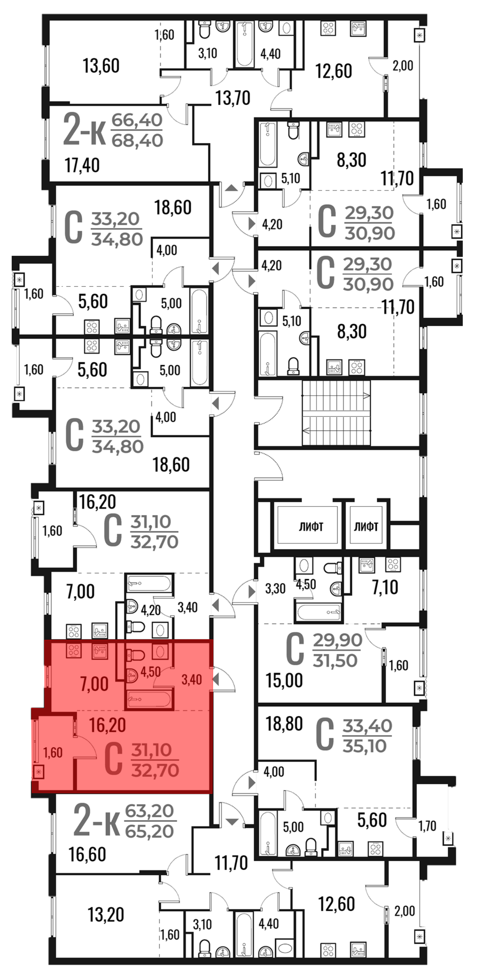 16 201 678 ₽2-к.квартира, 63.2 м², 3 эт.