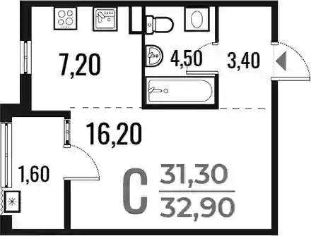 16 310 220 ₽1-к.квартира, 43.1 м², 4 эт.