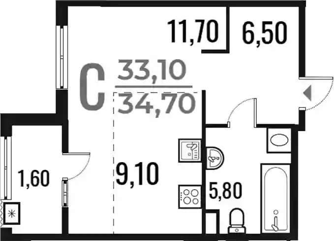 11 070 850 ₽Студия, 31.3 м², 2 эт.