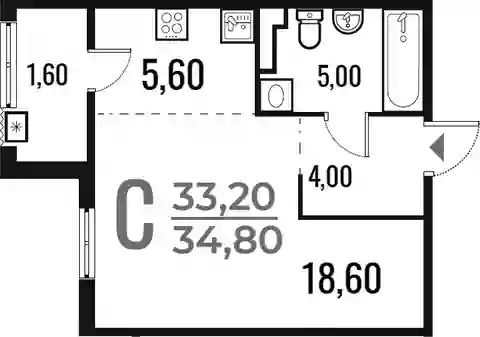 10 791 320 ₽Студия, 33.5 м², 2 эт.