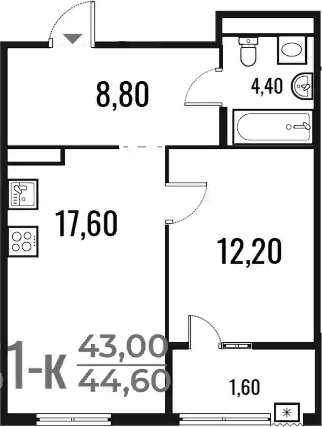 16 479 540 ₽1-к.квартира, 43.5 м², 2 эт.