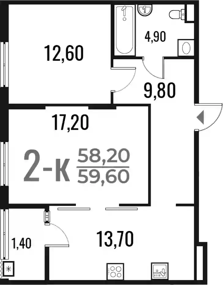 19 209 080 ₽2-к.квартира, 58.2 м², 2 эт.